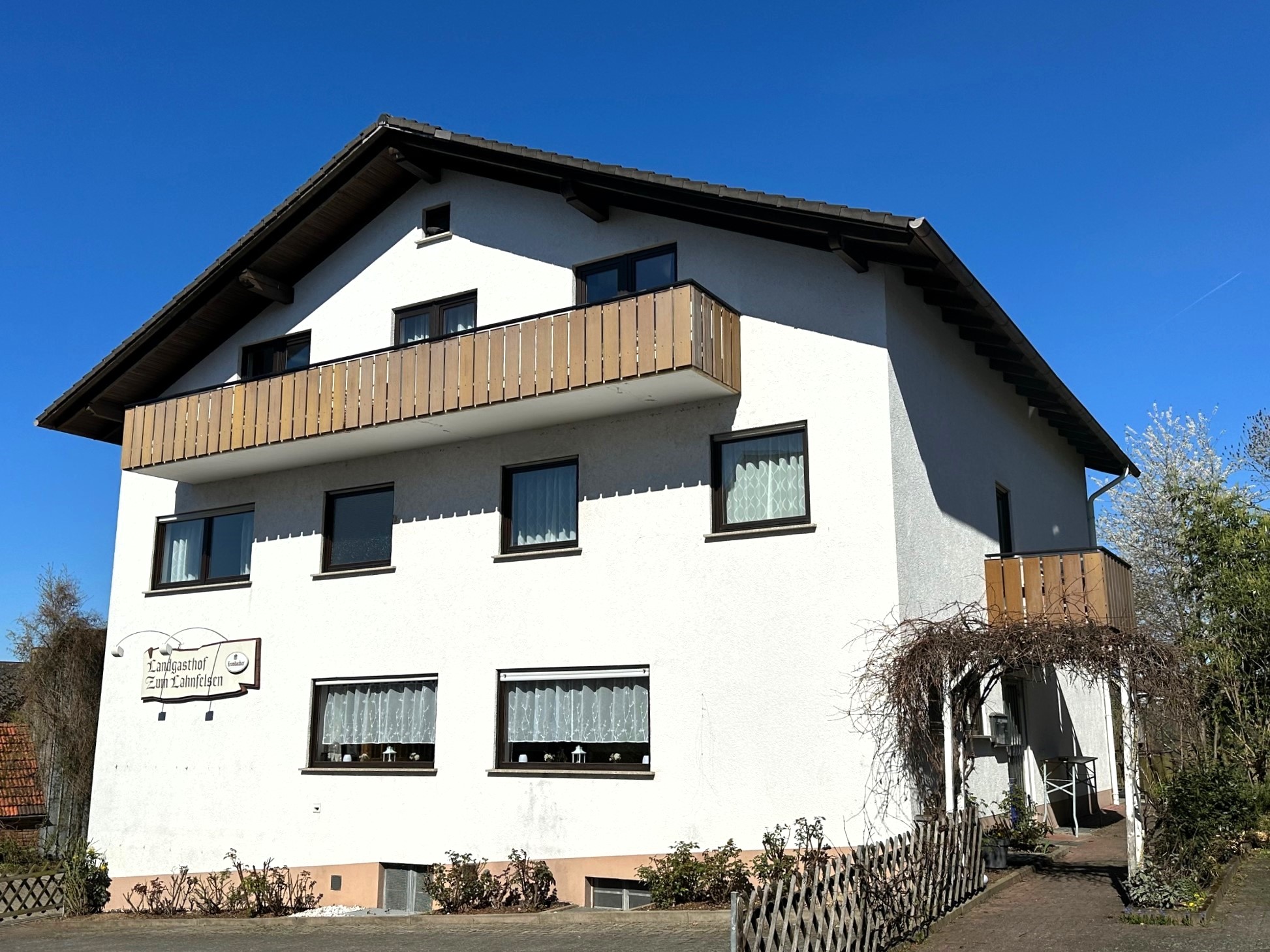 Unser Haus liegt an einer ruhigen Straße auf dem Lahnfelsen mit einer herrlichen Aussicht ins Lahntal und über die Wälder.